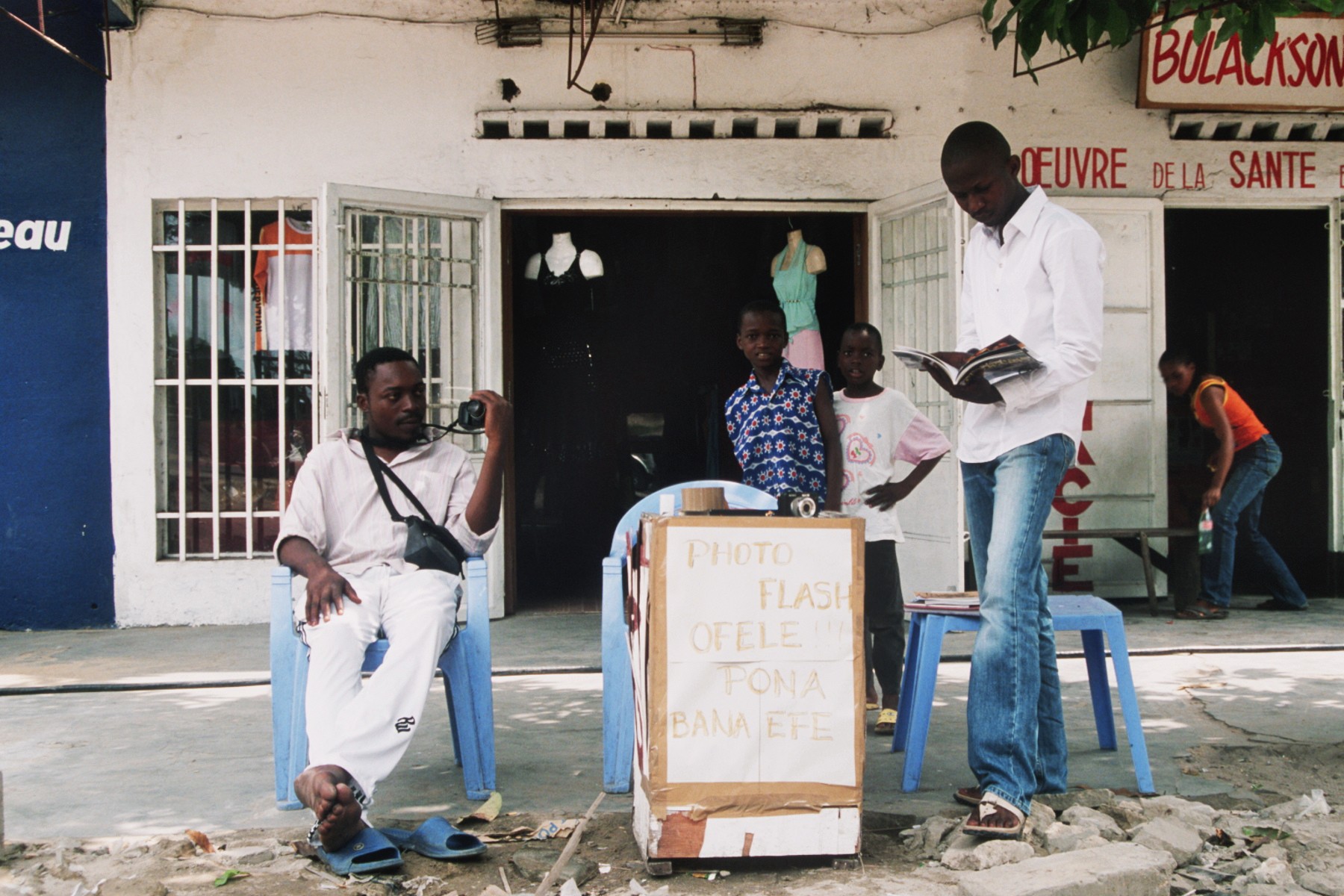 « Ayant compris que c’était compliqué de faire des photos à kinshasa, je me suis installée le 22 décembre de 10 h à 16 h un stand en face de l’Académie afin de photographier les « éfés » (vendeurs ambulants). Parole et négociation pour chacune des 40 diapositives qui n’ont finalement pas pu être développées sur place »
