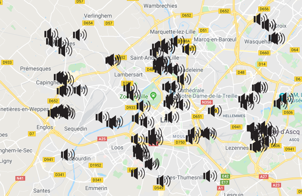 Ci DESSOUS LA CARTE DES DÉCLAMATOIRES DE L’ AGLOMÉRATION LILLOISE MISE EN LIGNE PAR ORIANA DUFRANE :
