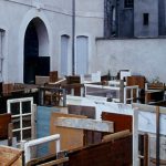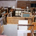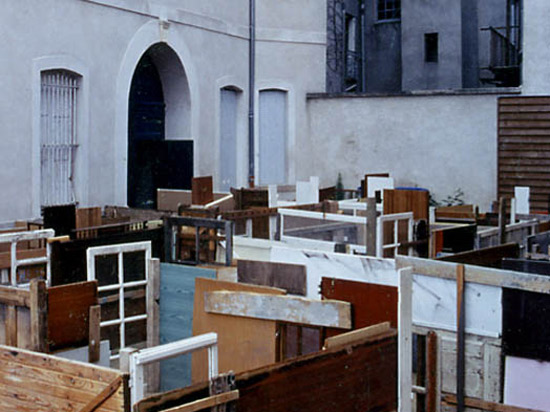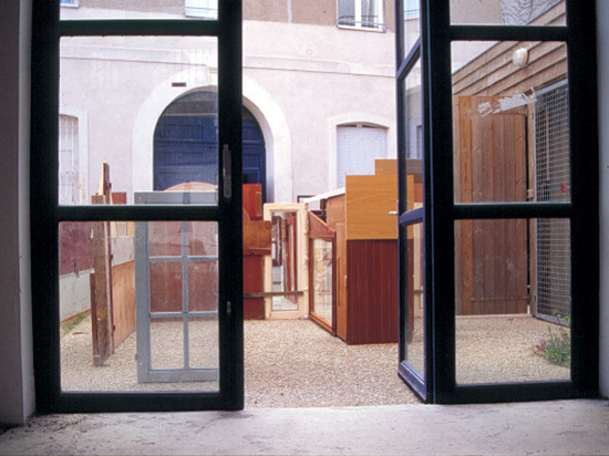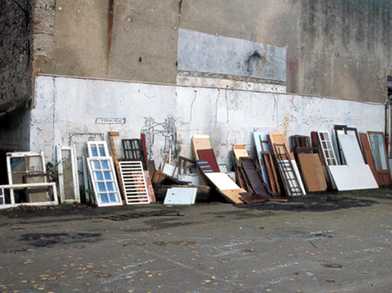 Portes, fenêtres, bois de récupération, vis. Approx 120 m2