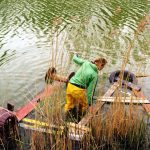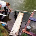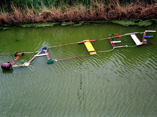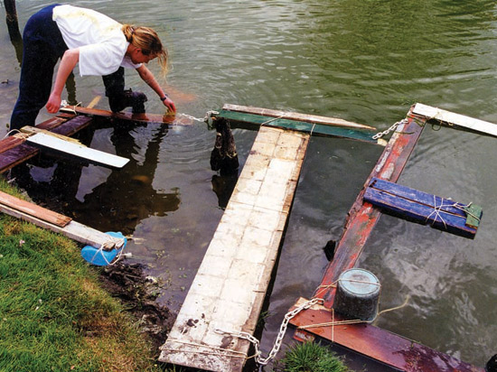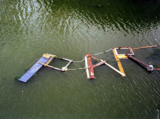 Bois de récupération, vis, ficelle, corde et divers objets flottants