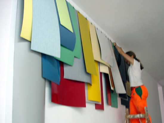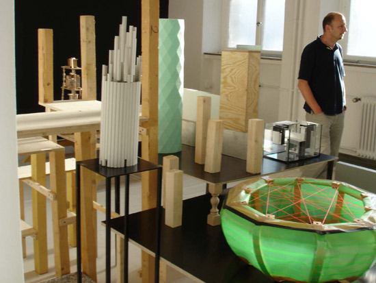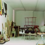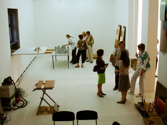 The installation is divided in two rooms : one looks like an exhibition, the other like a studio.