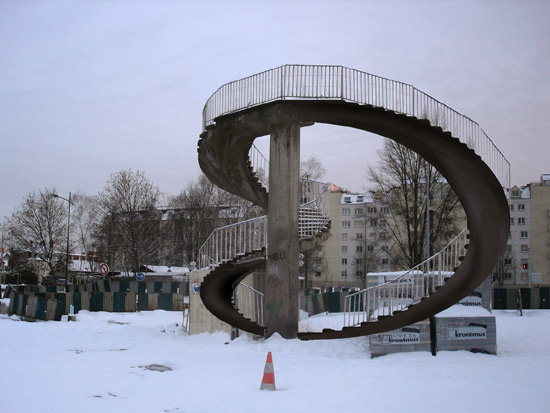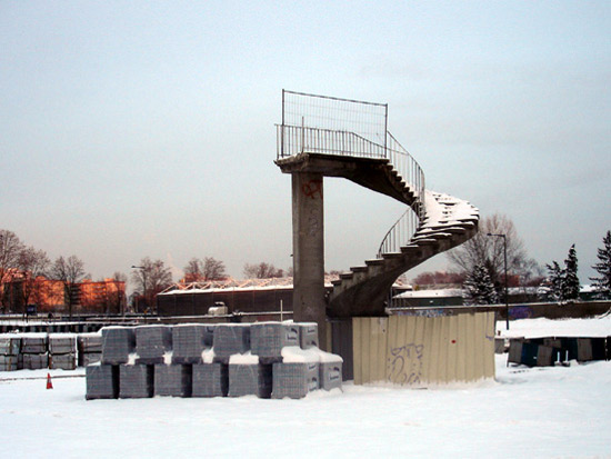 – This sculpture has as a foundation a pre-existing spiral staircase. The bridge to wich it was originally attached has been destroyed. I had to it a second part.