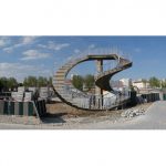 – Cette sculpture a pour base un escalier en colimaçon existant. Le pont auquel il se rattachait a été détruit. J’y ajoute une deuxième partie.