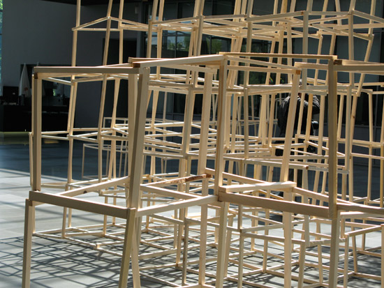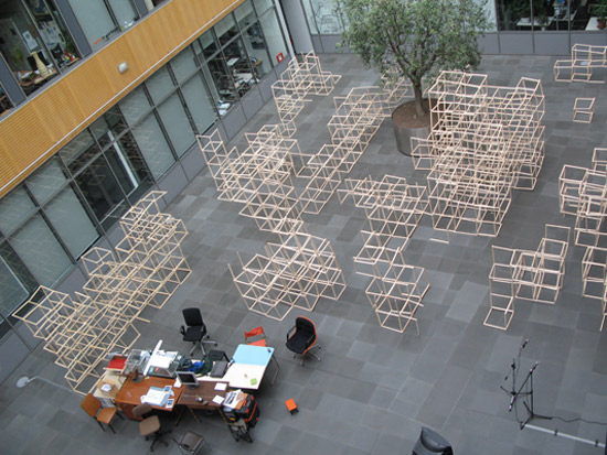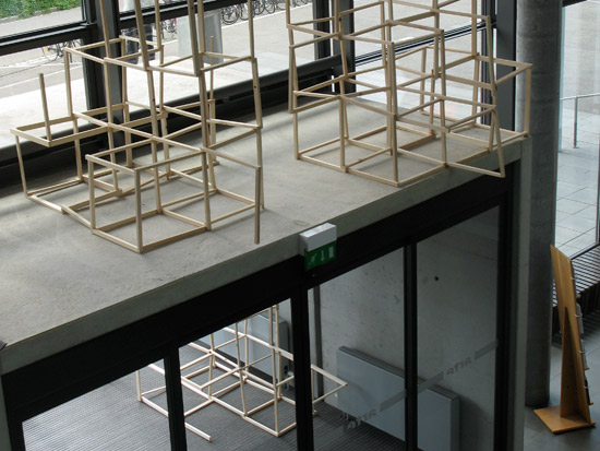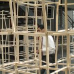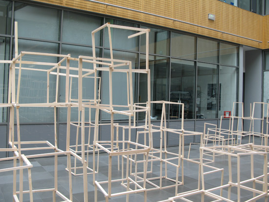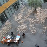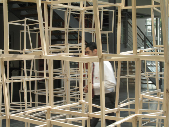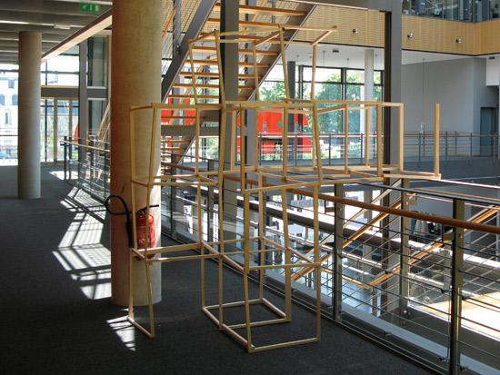 – At the end of the week I bring together all the piece of cages bancales (wobbly cages) in the middle of the compagny entrance hall.