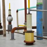 Tuyaux de résine, de métal, de pvc, bombonnes de gaz aux couleurs défraîchies, récupérés principalement auprès d’entreprises et de déchetteries industrielles: à partir de ce stock spécialement constitué pour son projet, Séverine Hubard réalise Joli turbin – véritable dédale au sein duquel le visiteur est invité à déambuler et à contempler une succession de tableaux qui s’offre à lui.