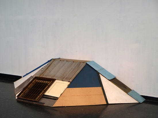 6 elements : charpente en bois et matériaux de récupération, 2 miradors : bois et boulon, 200m2