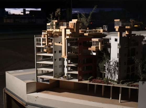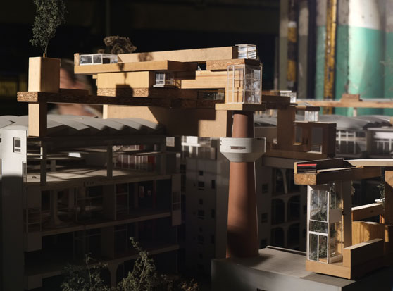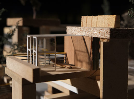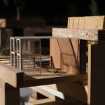 Maquette abandonnée et rénovée, morceaux de bois, plexis, colle et glue.