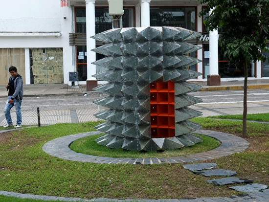 – Comme le fruit bolivien Ocoró, la sculpture est agressive à l’extérieur et confortable de l’intérieur.