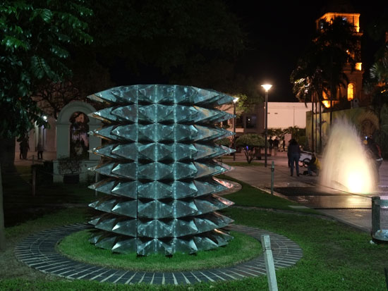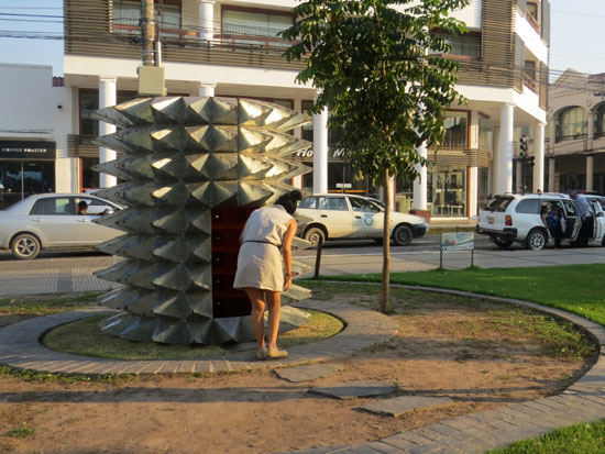 – El centro historico de la ciudad de Santa Cruz Sierra es muy ruidoso. Usando los códigos de la cámara anecoica o cámara sorda propongo una escultura vacía, dentro de la cual hay menos ecos.
