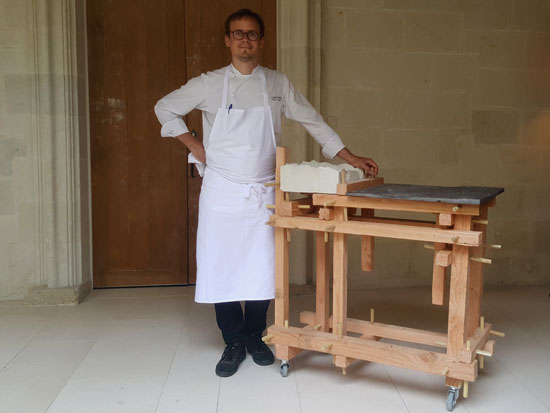 Blocs de tuffeau, ardoise, douglas, 500 chevilles de charpentiers en acacia, 150 pieds de sauges.