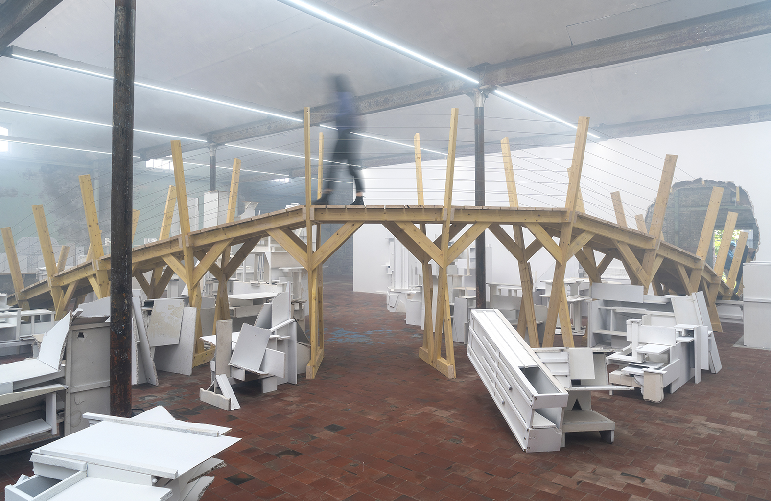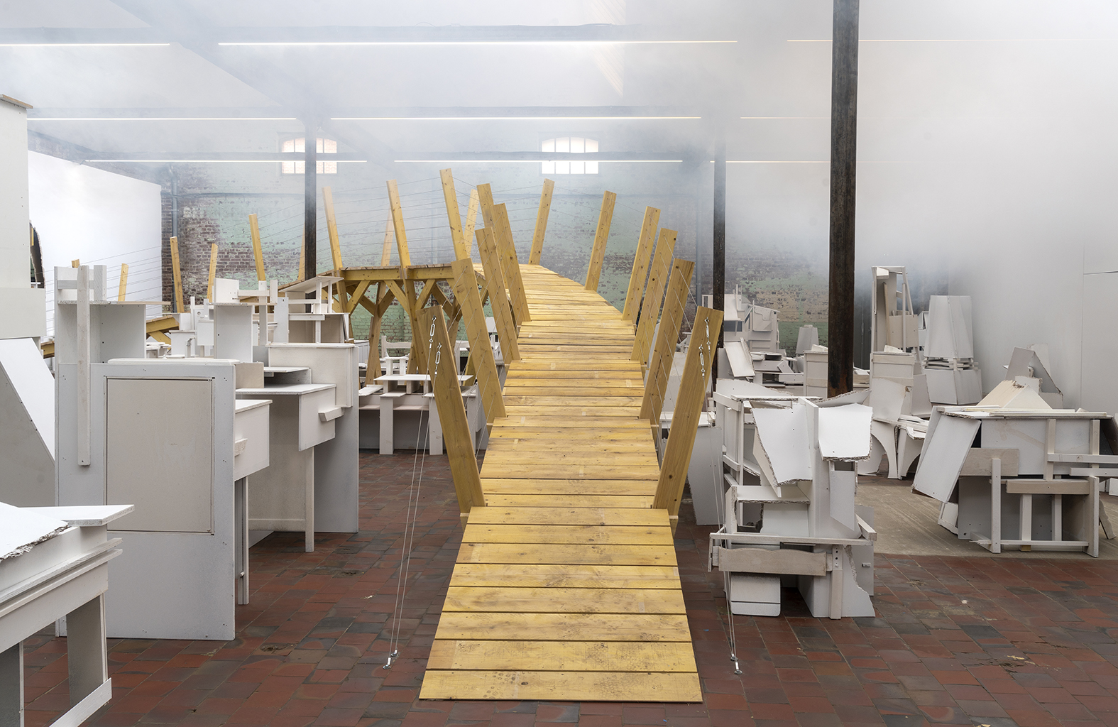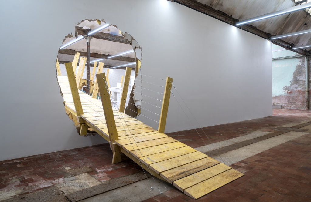Une passerelle en bois invite le spectateur à 2 m de haut