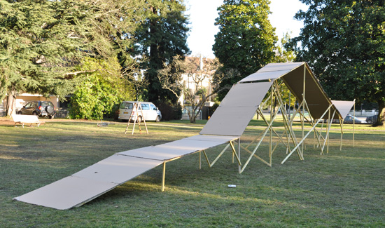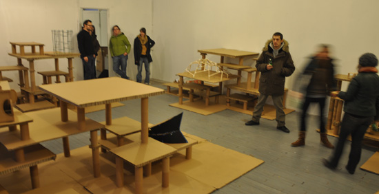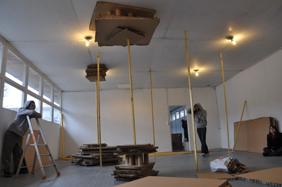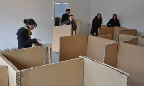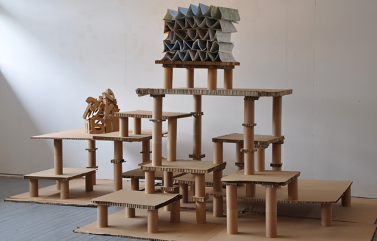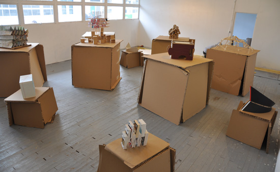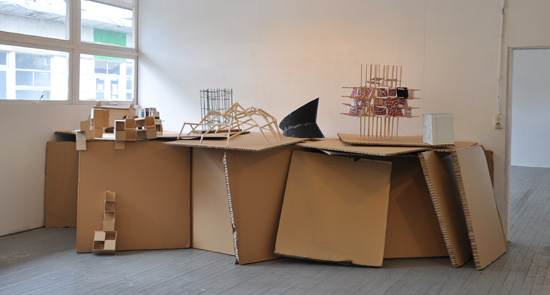 Suite à une présentation des pavillons de l’exposition universelle de shanghai 2010, chaque étudiant concoi et fabrique une moquette de son propre pavillon en une journée avec les matériaux de son choix.