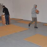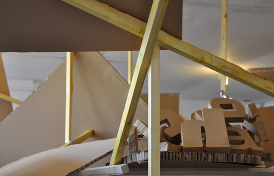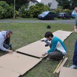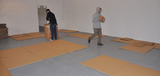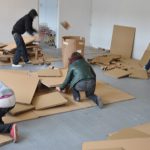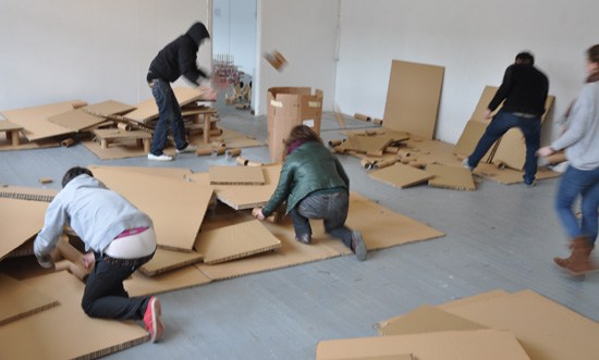 Un stock de carton alvéolé et des tasseaux de bois sont mis à disposition