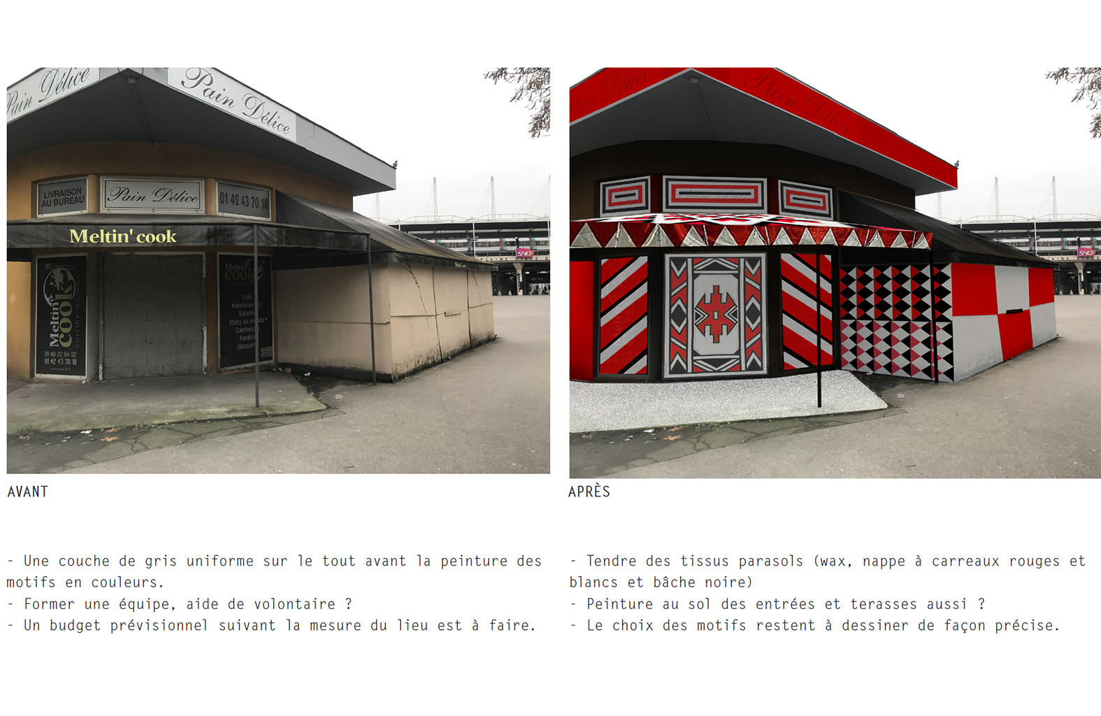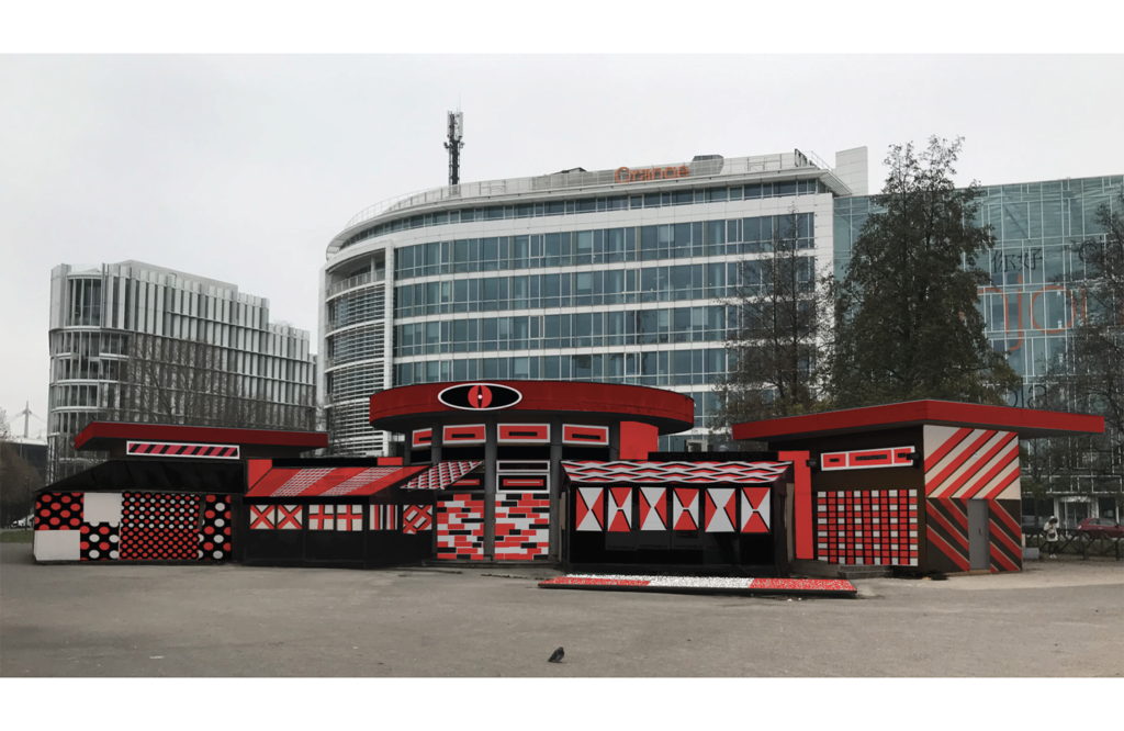 Quand je traverse la place des droits de l’homme, non loin du RER Stade de France, je suis attiré́ par ce complexe de kiosques fermés à l’abandon. En tant que sculpteur, je reconnais les formes intéressantes, les assemblages de cubes, de cylindres et parallélépipèdes qui sont imbriqués les uns dans les autres.