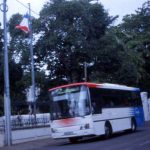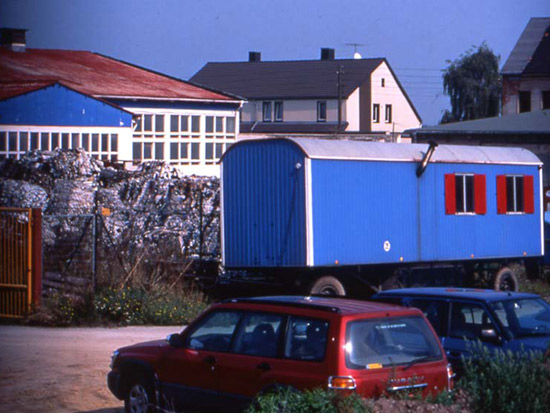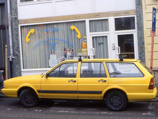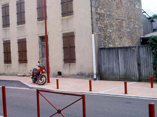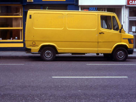 This title informs us about the two objects of each photograph: one colourful mobile object ( means of transport) and its positioning, this is to say the place where the vehicle stops is a place which bears its own colour also. I’m interested in the reciprocal action between these two objects, in the time when the two objects carry the same colour. I think that these encounters are not fortuitous. In general, every time, I have the presentiment of taking a photo when a vehicle is in its right place.