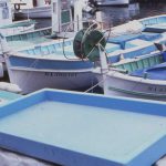 Also, a fisherman who likes blue has painted his boat blue and because there is some blue paint left, he has painted his gate with the same blue.