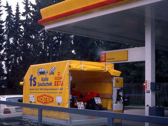 Dans d’autres circonstances, une entreprise va coller les couleurs de son enseigne sur ses camions. Cependant, on peut remarquer que différentes entreprises utilisent des couleurs identiques: Un camion Mc Donalds prendra plus facilement son essence chez Shell que chez Total! Pour rendre compte de ces informations, mon travail se doit d’être précis (les couleurs doivent être exactement pareilles). Puis c’est par la multiplication des exemples que j’essaye de montrer que ce phénomène ne peut être une accumulation de coïncidences mais est issue d’une règle qui reste à définir. Les couleurs ont l’air innocentes, leurs rencontres avec un élément alentour semble être dû au hasard, et le phénomène surprenant qui les rassemble paraît inexplicable, alors des interrogations se posent.