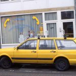 Pour le cadrage de chaque prise de vue, je fais confiance à la position du véhicule par rapport au reste afin que les deux ou plusieurs porteurs de la même couleur soient réunis sur la même image. Quelques fantaisies sont volontairement incrustées dans la série pour prévenir de l’agacement et de l’ampleur que prend cette recherche sur ma façon de regarder. En effet, cette prise en considération de la couleur finit par déformer le regard et rend insupportable le fait de voir une voiture orange garée à plus de trois mètres d’un portail subissant une première couche d’antirouille!