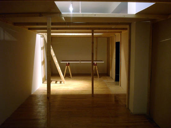 The visitor was invited to pass through the SKOL Artists Center’s offices before reaching the installation through the chimney. For the curious person the model was showing in the boxroom.