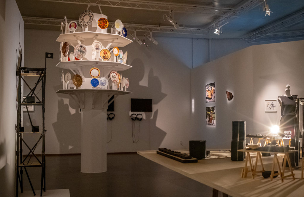 « Incontournable de la communication mobile, cette antenne relais n’en a plus que la silhouette. Une collection d’assiettes anciennes chinées et dépa- reillées remplace les supposées paraboles de récep- tion satellite. Jeu de mots et de formes, ce pilier à l’aspect rudimentaire questionne la place du bien commun et du partage humain, de l’interaction présentielle et distancielle, des besoins primaires et indispensables. La subtile substitution des objets met en abyme la définition du relais véritable, du rôle de l’échange et de la recherche des nourritures essentielles. » Fanny Serain