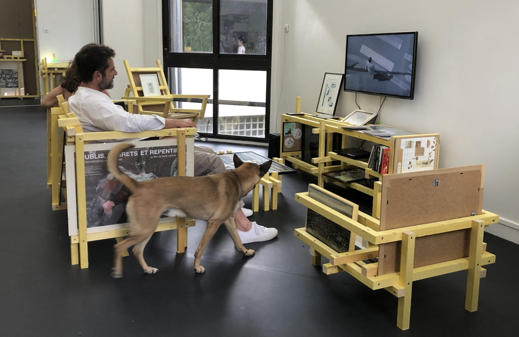 Reconstitutions du mobiliers d’un appartement dans le centre d’art à l’aide de ma «collections» d’œuvres d’amis artistes, 500 m de Tasseaux, vis.